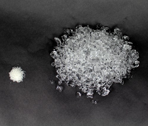 You can see the dry crystal at the left in Figure (1). Figure (1) right shows partially hydrated crystal.